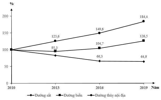 Cho biểu đồ về khối lượng hàng hóa vận chuyển của một số ngành vận tải nước ta giai đoạn 2010 - 2019: