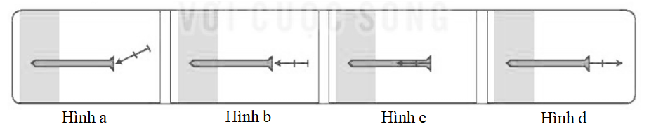 Hình nào dưới đây biểu diễn đúng lực do búa đóng đinh vào tường với tỉ xích 0,5 cm ứng với 10 N?