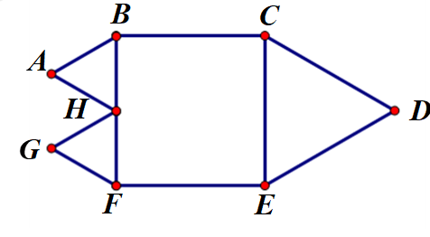 Trên hình vẽ có ba tam giác đều và một hình vuông. Tính tổng chu vi của ba tam giác đều và một hình vuông, biết một cạnh của hình vuông có độ dài \(4\,cm\).