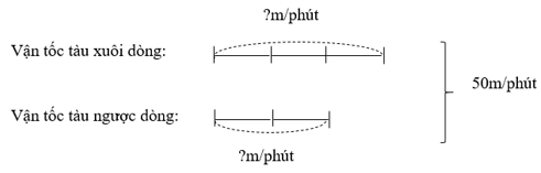 Một chiếc tàu thuỷ có chiều dài 15m đang chạy ngược dòng. Cùng lúc đó, một chiếc tàu thuỷ có chiều dài 20m chạy xuôi dòng với vận tốc nhanh gấp rưỡi của tàu ngược dòng (hai mũi tàu cách nhau 165m). Sau 4 phút thì hai chiếc tàu vượt qua nhau. Tính vận tốc của mỗi tàu?