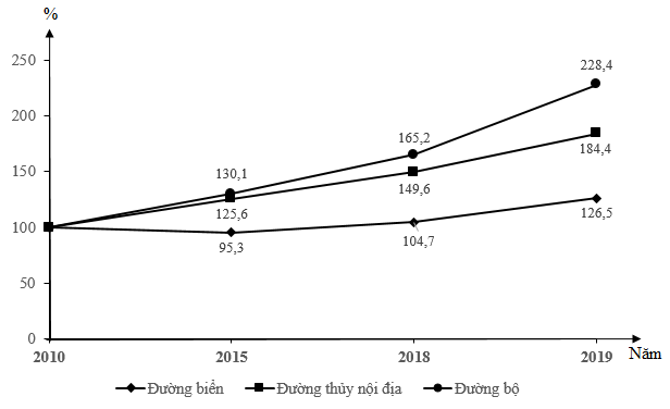 Cho biểu đồ về khối lượng hàng hóa vận chuyển của một số ngành vận tải nước ta giai đoạn 2010 – 2019: