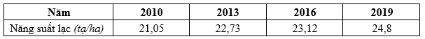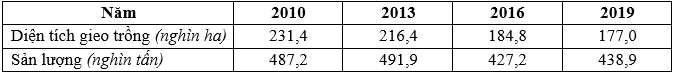Cho bảng số liệu:DIỆN TÍCH GIEO TRỒNG VÀ SẢN LƯỢNG LẠC CỦA NƯỚC TA GIAI ĐOẠN 2010 - 2019Theo