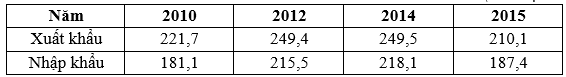 Cho bảng số liệu:XUẤT, NHẬP KHẨU HÀNG HÓA VÀ DỊCH VỤ CỦA MA-LAI-XI-A, GIAI ĐOẠN 2010 -