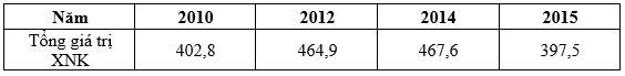 Cho bảng số liệu: