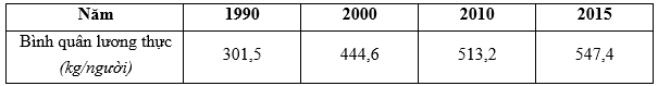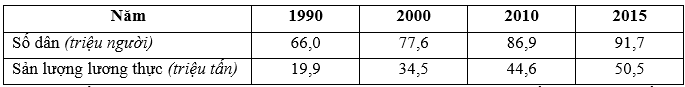Cho bảng số liệu:SỐ DÂN VÀ SẢN LƯỢNG LƯƠNG THỰC CỦA NƯỚC TA QUA CÁC NĂMTheo bảng số