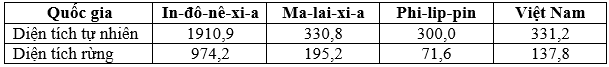 Cho bảng số liệu:DIỆN TÍCH TỰ NHIÊN VÀ DIỆN TÍCH RỪNG CỦA MỘT SỐ QUỐC GIA NĂM 2011(Đơn