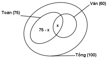 Trong số \(100\) học sinh có \(75\) học sinh thích học Toán, \(60\) học sinh thích học Văn.