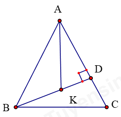 Cho tam giác ABC cân tại A, tia phân giác của góc A cắt đường cao BD ở K. CMR: \(CK \bot AB\)