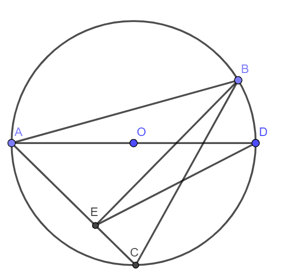 Trên đường tròn đường kính \(AD\) lấy hai điểm \(B,C\) khác phía đối với \(AD\) sao cho \(\widehat {BAC} = {60^0}.\) Từ \(B\) kẻ \(BE \bot AC\,\left( {E \in AC} \right)\).