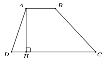 Cho hình thang \(ABCD\), \(AB\) song song với \(CD\), đường cao \(AH\). Biết \(AB = 7cm;\,CD = 10cm\) , diện