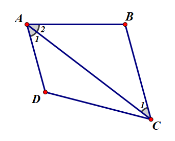 Tứ giác \(ABCD\) có \(AB = BC\) và \(AC\) là tia phân giác của góc \(A\). Chứng minh \(ABCD\) là hình thang.