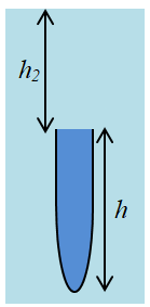 c) Ống được nhúng thẳng đứng vào nước, miệng ở dưới và cách mặt thoáng của nước một đoạn \({h_3} = 50\,\,cm\). Cho khối lượng riêng của nước là \({D_3} = 1000\,\,kg/{m^3}\).