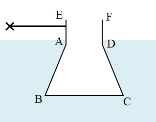 Một ống EABCDF hở hai đầu có phần dưới là một hình nón cụt. Đáy BC tì chặt vào một miếng bìa nhẹ rồi nhúng chìm trong nước. Ống được giữ chặt nhờ một giá đỡ (hình vẽ).