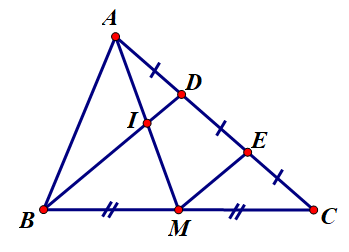 Cho tam giác \(ABC\), điểm \(D\) thuộc cạnh \(AC\) sao cho \(AD = \frac{1}{2}DC\). Gọi \(M\) là trung điểm của \(BC\), \(I\) là giao điểm của \(BD\) và \(AM\). Chứng minh rằng \(AI = IM.\)