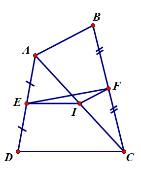 Cho tứ giác \(ABCD\). Gọi \(E,F,I\) theo thứ tự là trung điểm của \(AD,BC,AC.\) Chứng minh rằng: