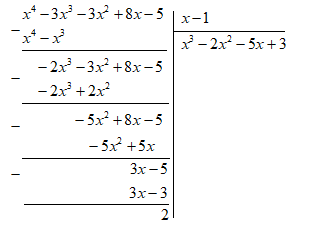 d) \(\left( {8x - 5 - 3{x^3} - 3{x^2} + {x^4}} \right):\left( {x - 1} \right)\)