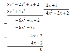 c) \(\left( {2 + x + 8{x^3} - 2{x^2}} \right):\left( {2x - 1} \right)\)