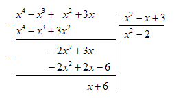 b) \(\left( { - {x^3} + 3x + {x^4} + {x^2}} \right):\left( {{x^2} - x + 3} \right)\)