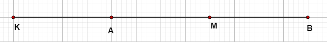 c) Trên tia đối của tia \(AB\) lấy điểm \(K\) sao cho \(AK = 4cm\). So sánh \(MK\) với \(AB\).