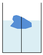 Trong một bình nước hình trụ có một khối nước đá nổi được giữ bằng một sợi dây nhẹ, không giãn (hình vẽ). Biết lúc đầu lực căng của sợi dây là 10 N. Hỏi mực nước trong bình thay đổi như thế nào nếu khối nước đá tan hết? Cho diện tích mặt thoáng của nước trong bình là \(100\,\,c{m^2}\), khối lượng riêng của nước là \(1000\,\,kg/{m^3}\).