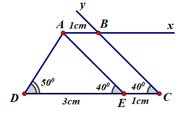 Dựng hình thang \(ABCD\left( {AB//CD} \right),\) biết \(AB = 1cm,CD = 4cm,\widehat D = {50^0}\) và \(\widehat C = {40^0}.\)