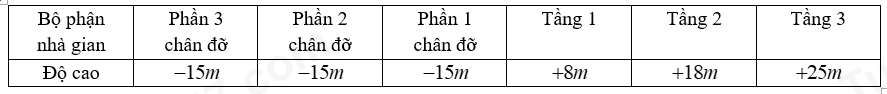 Một nhà giàn DK1 trên vùng biển Đông của Việt Nam có 3 tầng trên nước và 3 phần hệ thống chân đỡ có độ cao như sau:
