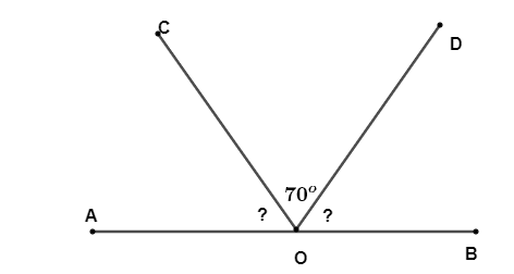 Cho góc bẹt \(AOB\). Trên cùng một nửa mặt phẳng bờ \(AB\) vẽ các tia \(OC,OD\) sao cho tia \(OC\) nằm giữa hai tia \(OA,OD\), \(\widehat {COD} = 70^\circ \) và \(\widehat {AOC} - \widehat {BOD} = 10^\circ \). Tính số đo các \(\widehat {AOC}\) và \(\widehat {BOD}\).