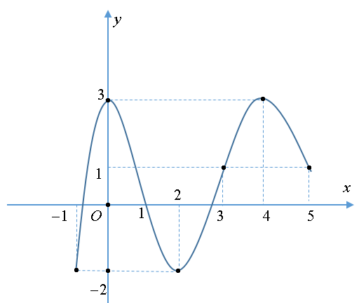 Cho hàm số \(y = f\left( x \right)\)xác định và liên tục trên \(\left[ { - 1;5} \right]\)có đồ thị