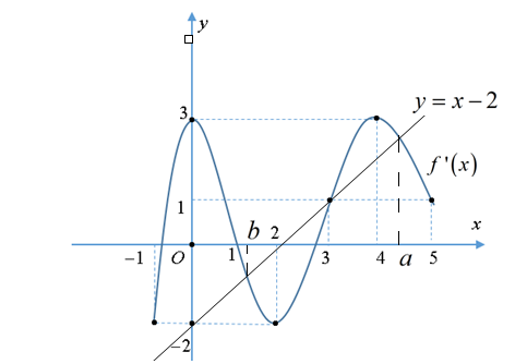 Cho hàm số \(y = f\left( x \right)\)xác định và liên tục trên \(\left[ { - 1;5} \right]\)có đồ thị của hàm \(y = f'\left( x \right)\) được cho như hình bên dưới. Hàm số \(g\left( x \right) = - 2f\left( x \right) + {x^2} - 4x + 4\) đồng biến trên khoảng nào trong các khoảng sau đây?