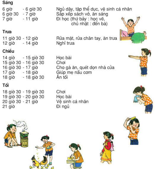 Dưới đây là thời gian biểu của bạn Gia Hân: Quan sát thời gian biểu và cho biết: - Sáng bạn