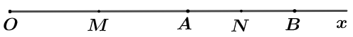 Trên tia \(Ox\) lấy hai điểm \(A,\,\,B\) sao cho \(OA = 5cm,\,\,OB = 8cm\).