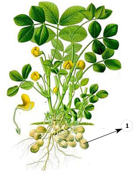 Dưới đây là hình ảnh cây lạc (đậu phộng). Cơ quan (1) thuộc hệ rễ