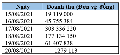 Doanh thu bán hàng của 1 cửa hàng được viết ở bảng sau. Trong tuần đó, ngày nào cửa hàng có