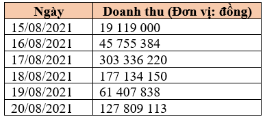 Sắp xếp doanh thu theo ngày của cửa hàng dưới đây theo thứ tự từ lớn đến
