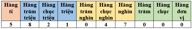 Số nào đúng với cách đọc “Năm tỉ tám trăm hai mươi mốt triệu không trăm bốn mươi bảy nghìn”?