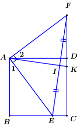 b) Gọi \(I\) là trung điểm của đoạn thẳng \(EF\), tia \(AI\) cắt cạnh \(CD\) tại \(K\). Chứng minh \(A{E^2} = KF.CF\).