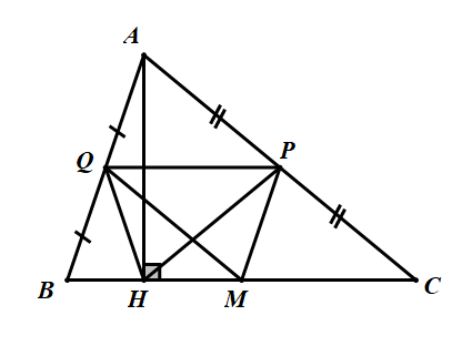 Cho tam giác nhọn \(ABC\) \(\left( {AB < AC} \right)\), đường cao \(AH\). Gọi \(M,P,Q\) lần lượt là trung điểm của \(BC,CA,AB\). Chứng minh \(MPQH\) là hình thang cân.