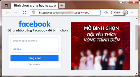 Em nhận được tin nhắn của bạn thân nhờ bình chọn cho cuộc thi giọng hát mà có người quen của bạn em tham gia. Khi nhấp vào link bạn em gửi mở ra website có giao diện như sau: