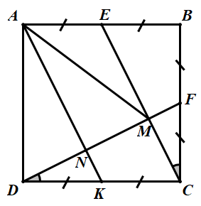 b) Gọi \(M\) là giao điểm của \(CE\) và \(DF\). Chứng minh rằng: \(AM = AD\).