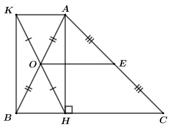 b) Từ \(A\) vẽ \(AH \bot BC\) tại \(H\). Gọi \(K\) là điểm đối xứng của \(H\) qua \(O\). Chứng minh tứ giác \(AHBK\) là hình chữ nhật.