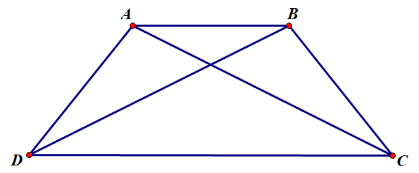 Cho hình thang cân \(ABCD\)\(\left( {AB//CD} \right)\) có \(AB = 6cm\), \(AD = 8cm\), \(AC = 11cm\), \(\angle BCD =