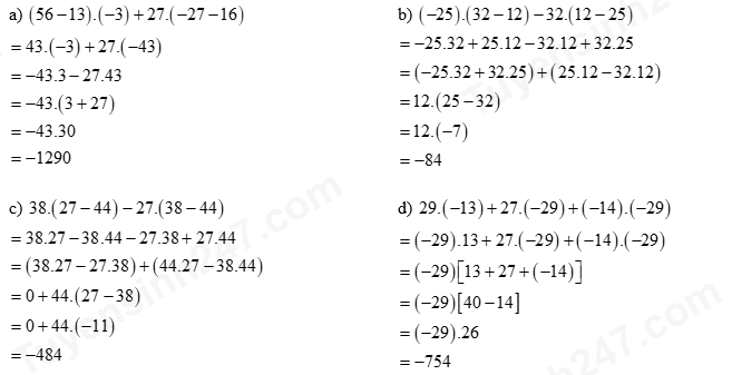 a) \(\left( {56 - 13} \right).\left( { - 3} \right) + 27.\left( { - 27 - 16} \right)\)