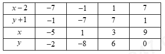 Tìm các số nguyên \(x;y\) sao cho: \(\left( {x - 2} \right).\left( {y + 1} \right) = 7\).