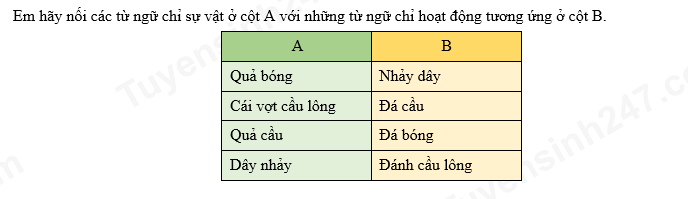 Vận dụng kiến thuức về từ chỉ sự vật, hoạt động.