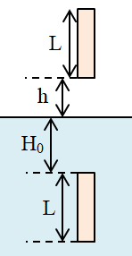 Một thanh đồng chất (khối lượng riêng \(D = 600\,\,kg/{m^3}\)) có tiết diện đều và chiều dài \(L = 24\,\,cm\), được giữ thẳng đứng trong nước (khối lượng riêng \({D_0} = 1000\,\,kg/{m^3}\)), đầu trên của thanh dưới mặt nước một đoạn \({H_0}\). Coi thanh chỉ chuyển động theo phương thẳng đứng. Bỏ qua sức cản của nước và sự thay đổi của mực nước. Xác định điều kiện của \({H_0}\) để thanh nhô lên khỏi mặt nước sau khi thả ra.