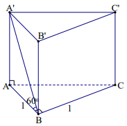 Cho lăng trụ đứng \(ABC.A'B'C'\) có đáy \(ABC\) là tam giác vuông tại \(B\) và \(BA = BC = 1\). Cạnh