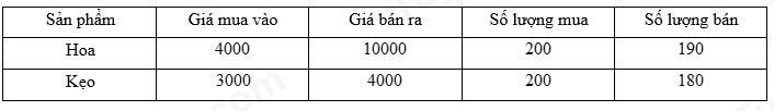 Cho bảng kết quả kinh doanh quà của lớp 6A trong ngày Phụ nữ Việt Nam:
