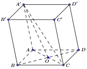 Cho khối lăng trụ \(ABCD.A'B'C'D'\) có thể tích bằng \(24\), đáy \(ABCD\) là hình vuông tâm \(O\).