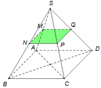Cho hình chóp \(S.ABCD\) có \(ABCD\) là hình bình hành. \(M,N,P,Q\) lần lượt là trung điểm của