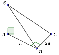 Cho khối chóp \(S.ABC\) có \(SA\) vuông góc với đáy, tam giác \(ABC\) vuông tại \(B\,;\,\,AB =